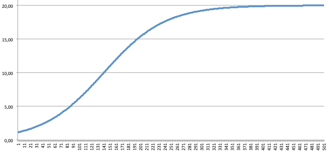* On the one hand, we have a stacking policy. Your NFT is sold to you with a purse of 1111 $MTCB (Metacubium) The original buyers will have access to a reward according to a logical law which will increase over time, and will be capped at around $20 MTCB per day after one year, and will grow in the first year according to a **Logistic distribution** law: the more you keep your NFT long, the more and more you will earn.